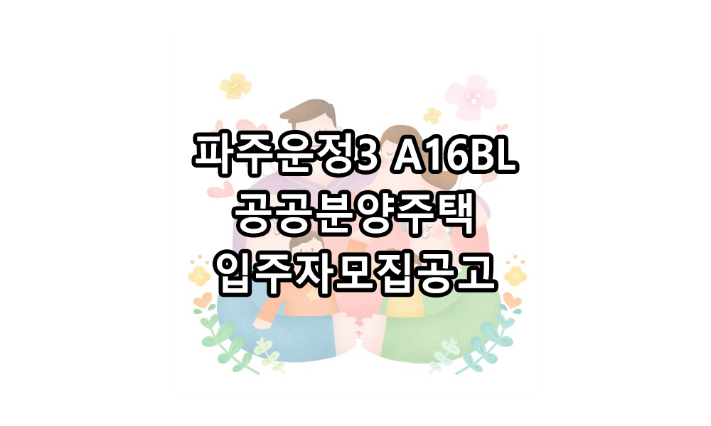 파주운정3 A16BL 공공분양주택 입주자모집공고 ▶ 단지정보 위치 경기도 파주시 목동동 산 34 지도보기 총세대수 모집호수 1498 세대 최초입주월 2023년 12월 단지규모 난방방식 지역난방 기타 ※ 공급위치 : 경기도 파주시 목동동 일원 파주운정3지구 내 A16블록 ※ 공급정보의 주택가격은 '1층~기본형' 기준 입니다. 자세한 사항은 모집 공고문 확인 바랍니다. 공고문 ▶ 공급정보 형명 전용면적 공급세대수 공급금액(원) 확장 비용 계 사전 예약 특별공급 일반 공급 기타 공급 계 계약금 중도금 잔금 융자금 다자녀 가구 신혼 부부 생애 최초 노부모 부양 기타 특별 059.8800A 59.88m2 531 0 15 187 143 26 79 81 0 307,050,000 30,705,000 122,820,00..